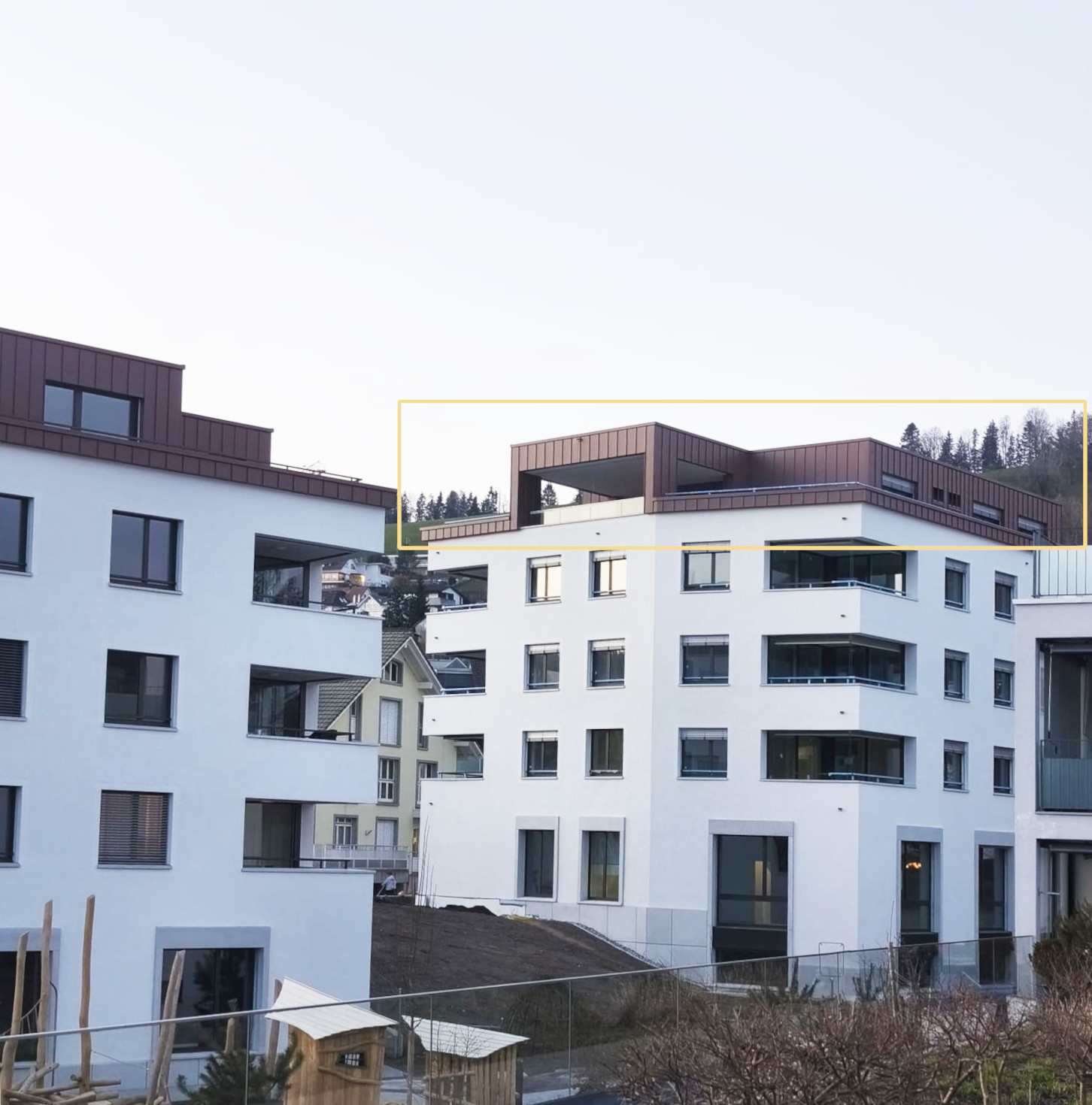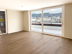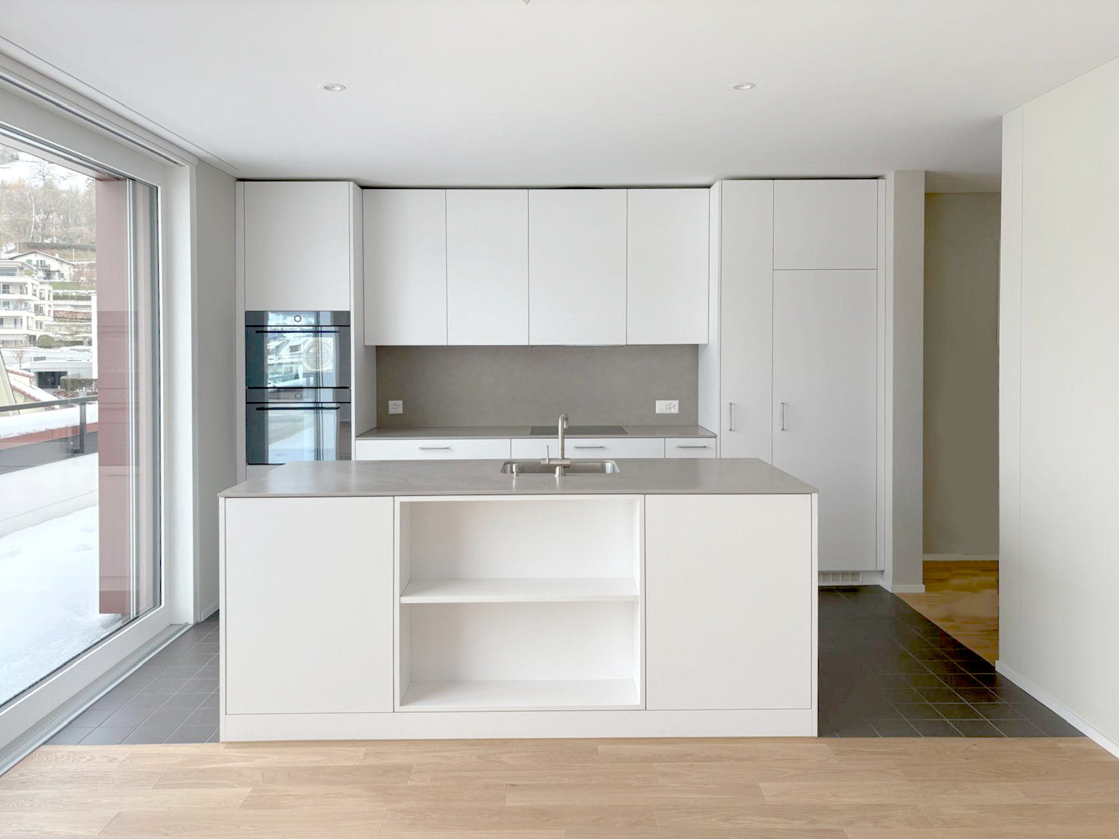 This spacious 5.5-room penthouse apartment in the newly built Euw development offers plenty of space with four bedrooms, two bathrooms, and a practical utility room with washing machine. One bathroom features a bathtub, the other a walk-in shower. The top-floor location provides beautiful views and an abundance of natural light. A generous terrace of 134 m² with a covered area invites you to enjoy the outdoors – whatever the weather. Barrier-free access directly into the apartment via lift ensures maximum comfort for every stage of life.